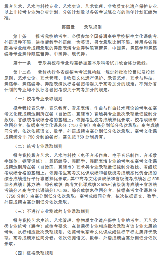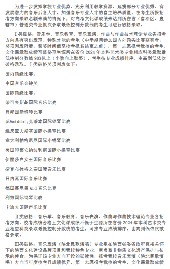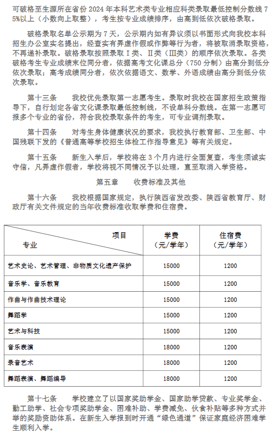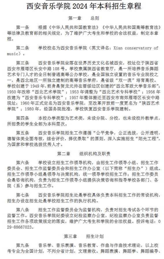 西安音乐学院2024年本科招生章程